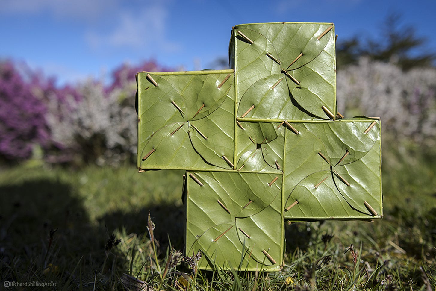So, as far as I know, there are several different factors which make my leaf art different to textile art including needing to use the central vein as part of the structure, which influences what shapes can be used and how they fit together and with assymetry how the different parts will interact, as well as the huge variance in growing materials and even how single species of leaves vary in different environmental conditions.